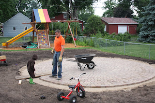 We took out the circle paver patio that we had at our old house over Memorial weekend and Chad was able to make a spot for it with the Bobcat.